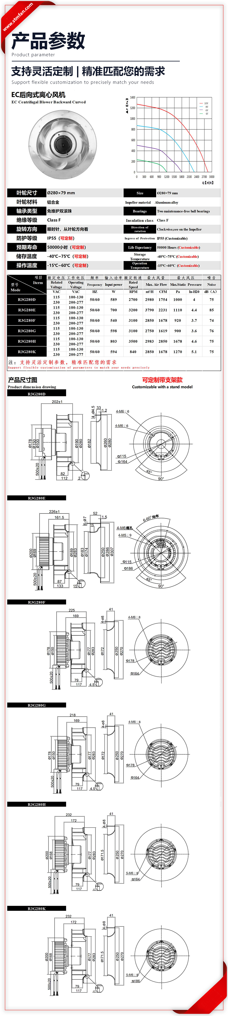产品: 浏览次数:17斯托姆280mm空气净化器后倾离心风机防水低噪音网络机柜